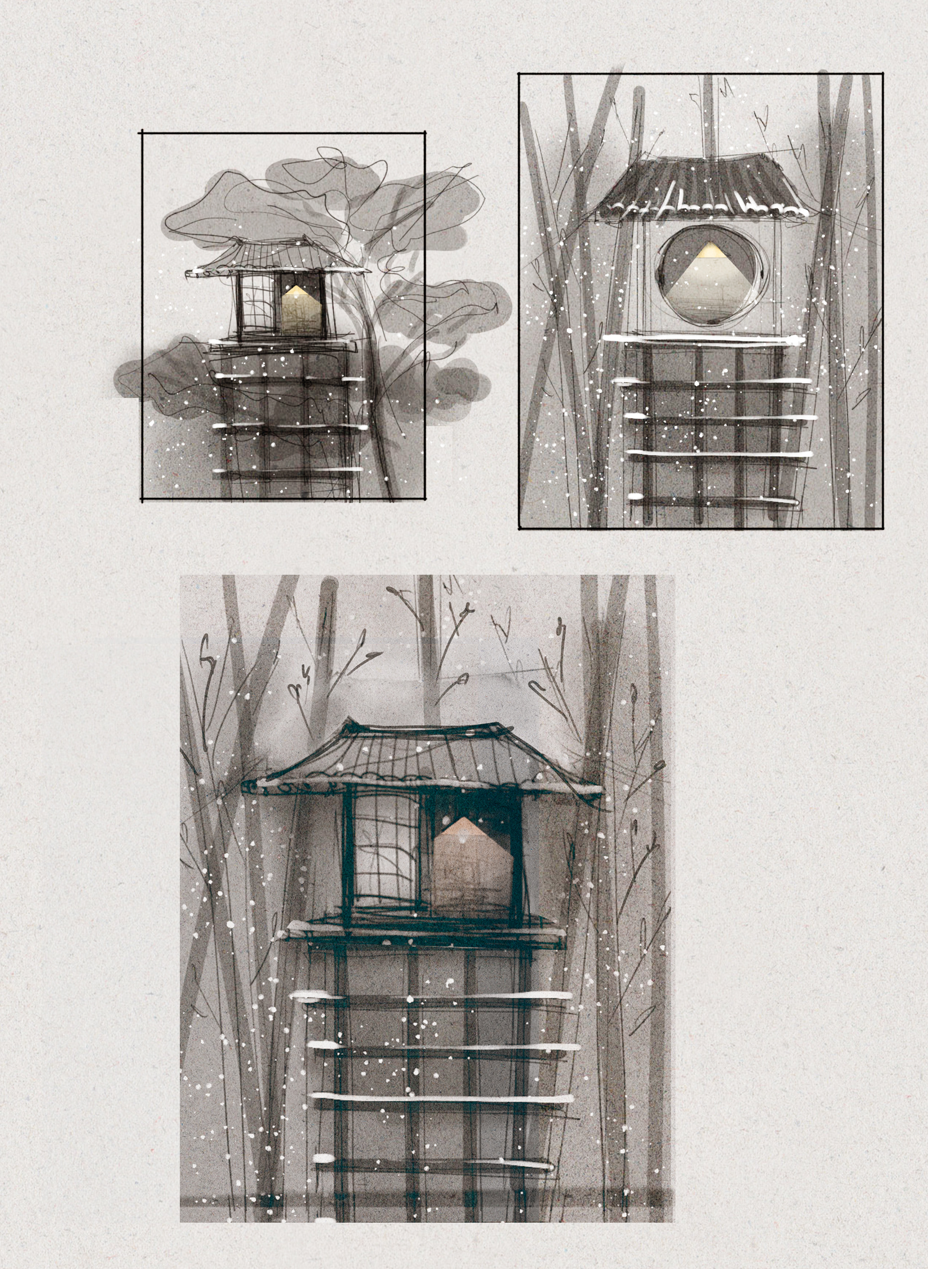 Originally drawn for the illustration challenge under the theme of "Winter Treehouse".