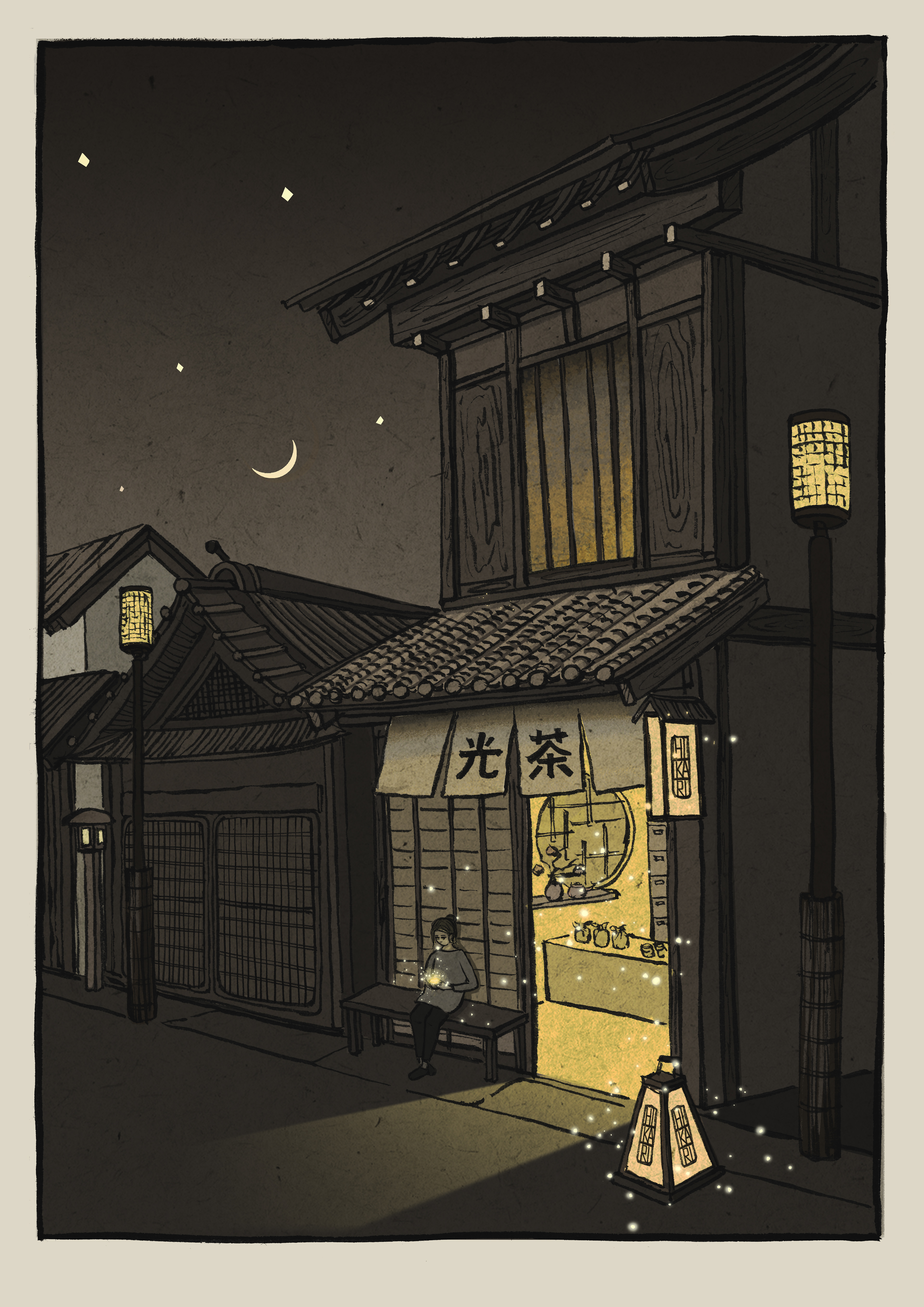 Illustration of a fictional Hikari tea store